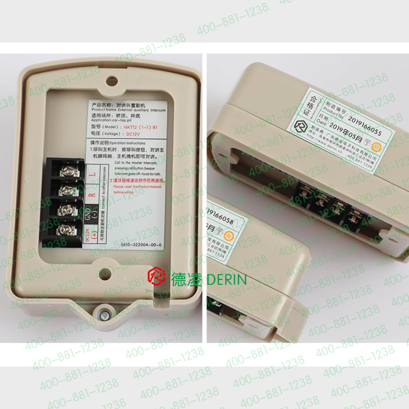 产品型号:NKT12(1-1)B1 参数:工作电压:DCl2V 响铃声级:≥70dB 环境温度:-20℃~70℃ 相对湿度:20%~95% 用途:适用轿顶、底坑,实现现场与电梯各部分的对讲通话 产品简述:本公司产品的外观自行设计、开模、注塑;电子线路由公司技术人员精心设计研发,生产一律采用优质原材料,品质严格把关,售后服务到位,我们力求为广大客户提供音质清晰,抗干扰能力强、安全可靠的对讲系统。